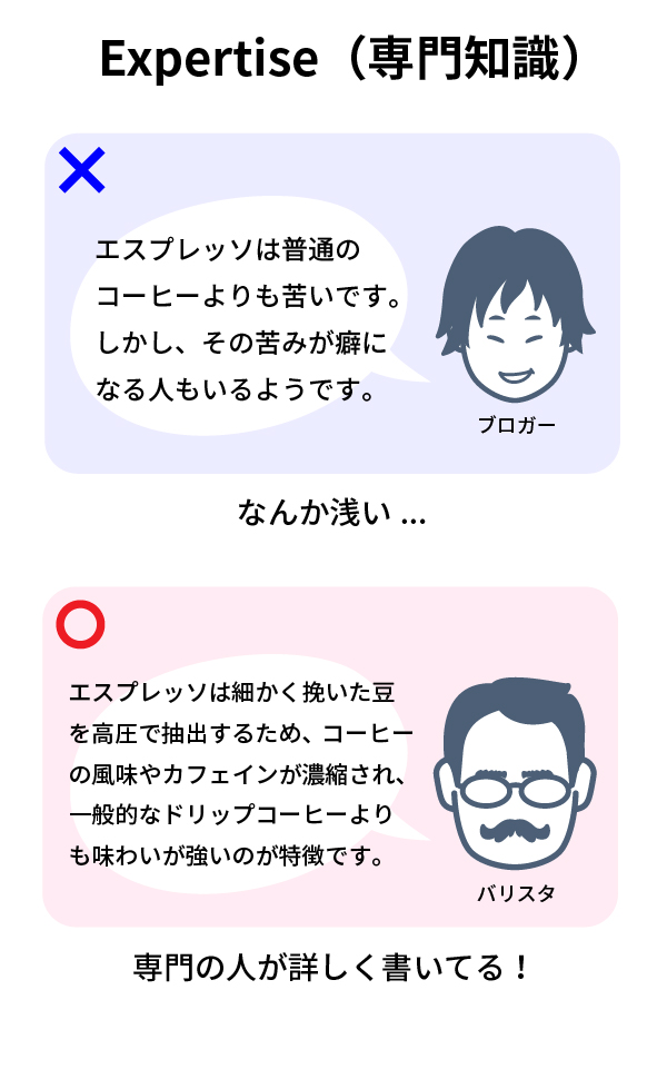 医師、弁護士、栄養士などの専門資格を持つ人が執筆した記事や、専門的な知識に基づいた解説は評価されやすいです。